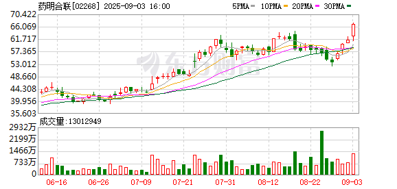 记者注意到,发布配售计划和控股股东认购公告后,药明合联9月3日盘中大涨。截至收盘时,药明合联上涨9.30%至67港元/股。