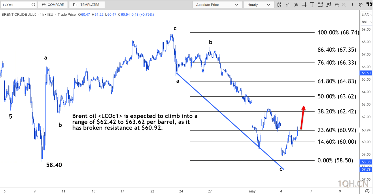 如果跌破60美元或将引发跌至58.50美元的走势。日线图显示,该合约在58.81美元的支撑位附近企稳。第二轮反弹可能已开始,但力度可能弱于自58.40美元以来的第一次反弹。