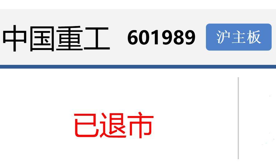 9月5日,“601989”(中国重工)正式退出A股舞台,每股股价定格在5.10元。