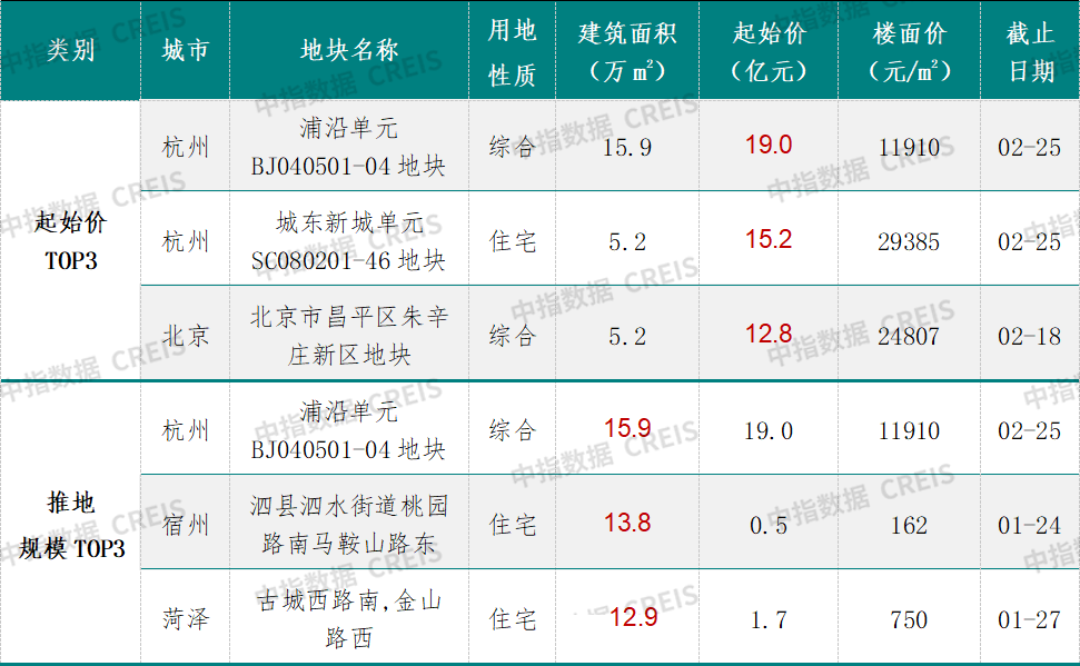 3周全国宅地出让金TOP5中,一线城市占二席,在20亿元以上的地块占三席。北京市丰台区西南郊冷库及周边城中村改造项目地块出让金居首位。