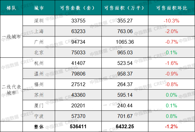 1、交易市场:3周30城新房成交面积环比下降8.5%,同比下降2.8%;20城二手房成交套数环比下降13.3%,同比增长16.9%。10城新房可售面积环比下降1.2%。