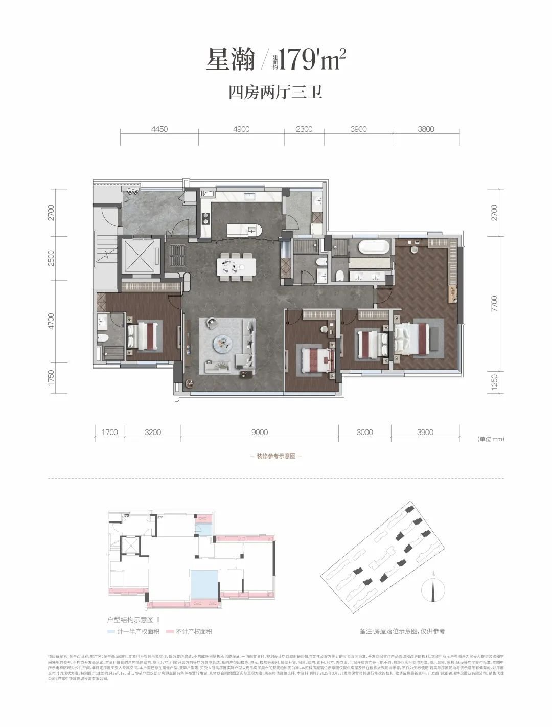 金牛西派御府的产品为建面约143/179/256㎡的大平层,主力面积段179㎡。