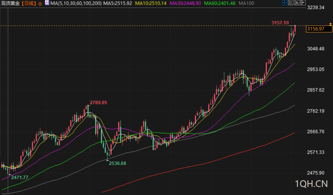 现货黄金周四早间,持续走高,刷新历史高位至3159.44附近;因特朗普关税公布,避险需求支撑。