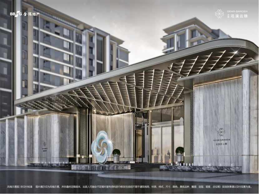 竖向金属线条切割光影,顶部香槟金架构尽显科技与格调交织的锋芒。背漆玻璃幕墙以透光与反射的双重特性,消解建筑与自然的边界。甄选铝板历经风霜依旧历久弥新,三玻两腔外窗将喧嚣隔绝于外,在花溪云锦,建筑不是简单的居住容器,而是一座向未来生长的城市雕塑。