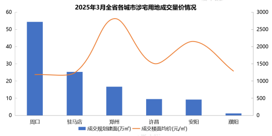 其次是驻马店市,成交2宗住宅用地,规划建筑面积合计25.35万平米;