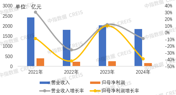 受竣工下滑影响,营收同比下滑。2024年,中海地产全年实现营业收入1851.5亿元,同比下降8.6%;归母净利润156.4亿元,同比下降38.9%。剔除税后投资物业重估增值的归母净利润为157.2亿元,同比下降30.4%;每股基本盈利为每股1.43元。2024年,中海地产(不含中海宏洋)竣工面积达1059万平方米,较上年下降35.5%,竣工交付下滑导致其房地产开发业务收入下降,房地产开发业务收入为1747.2亿元,同比下降9.4%。