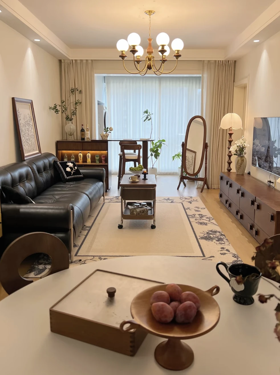 中古风被偏爱的原因很多,其中一个就是它的适配性。中古风基本不挑户型,大小面积都能装出各自的美感,无论是精装房、二手房、毛坯房,它都能完美适配。