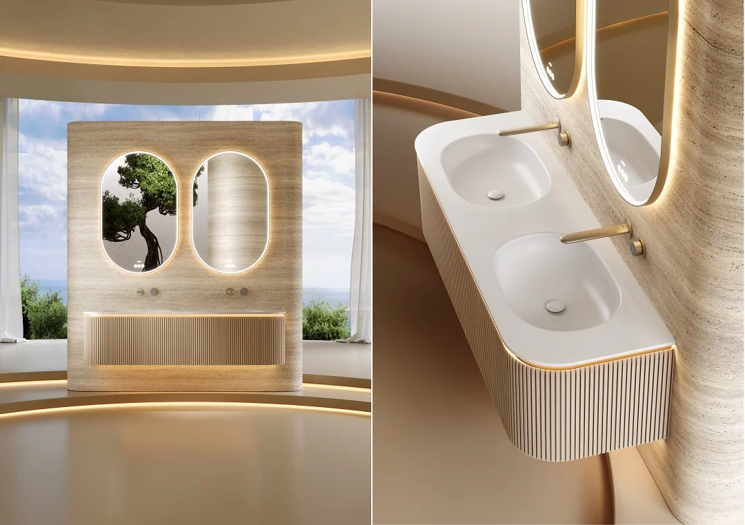 NOVIA诺亚浴室柜提供两款设计,通过人性化设计与智慧交互的无缝结合,为消费者量身打造专属卫浴美学空间。