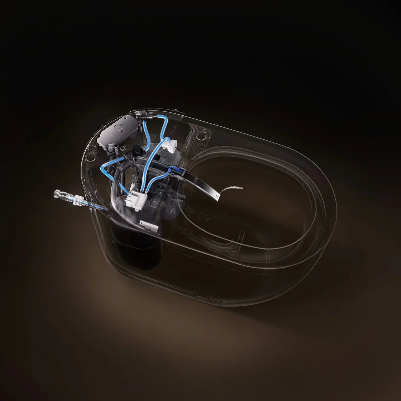 NOVIA诺亚壁挂式智能坐便器则采用AXENT恩仕的专利技术AXENT. INFINITY无极漩吸系统,通过流体力学建模分析,在陶瓷洗净面上构建特殊形状,促进强力漩涡的形成。同时,这一冲刷技术大幅减轻了对水封的冲击,较传统冲落式噪音降低55%,提供静谧舒适的卫浴体验。