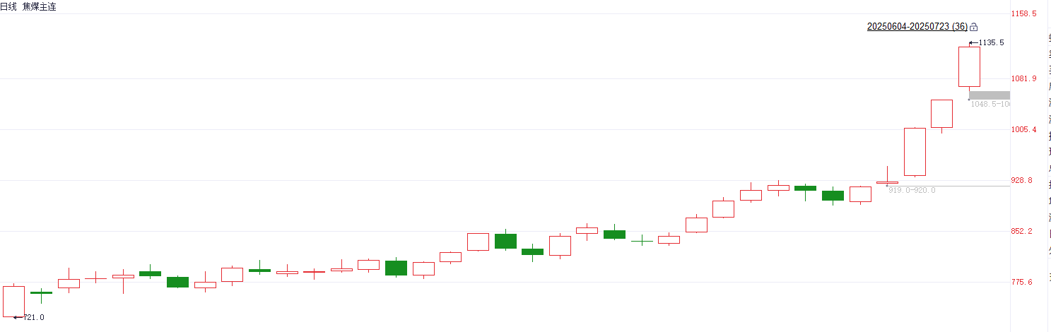 消息方面,近期焦煤主力合约持续走强,该品种6月4日以来累计涨幅接近60%。现报1125元/吨。